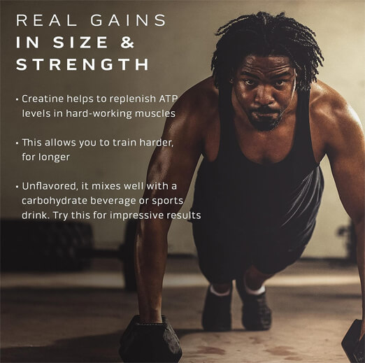 MUSCLE RECOVERY – Creatine helps to replenish ATP levels in hard-working muscles. This allows you to train harder, for longer.