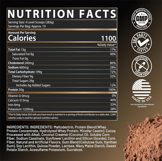 Nutrex Mass infusion is an advanced weight gain formula supplying your body with 50 grams of high quality protein per serving, over 1120 calories along with 200 grams of carbohydrates.