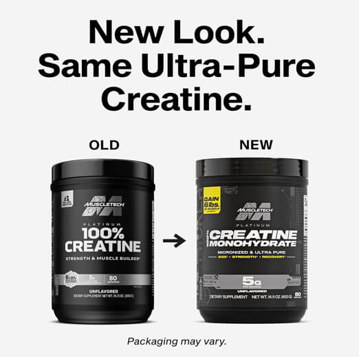 CREATINE MONOHYDRATE – MuscleTech Platinum Creatine delivers 5g of 100% pure, HPLC-tested, micronized creatine monohydrate to increase lean muscle, improve strength and muscle endurance.