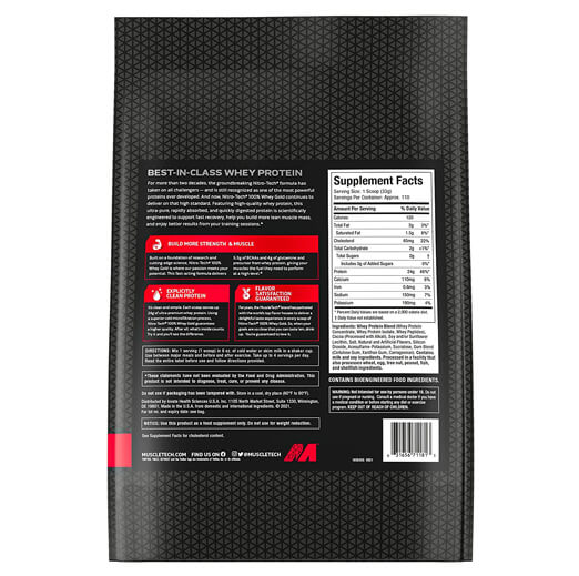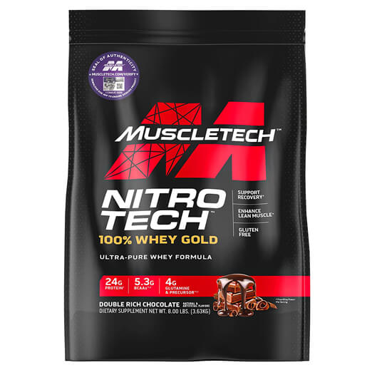 Hydrolyzed whey peptides are the fastest-absorbing protein micro-fractions on the planet, which is why they are a significant part of our formula! Along with micro-filtered whey protein isolate plus whey concentrate, Nitro-Tech 100% Whey Gold delivers superior absorption, digestibility and mixability. Each scoop serves up 24 g of ultra-premium protein that supplies 5.5 g of BCAA and 4 g of glutamine and precursor. Nitro-Tech 100% Whey Gold uses a superior cold microfiltration process to guarantee a higher quality whey protein. Combined with an award-winning flavor profile, Nitro-Tech 100% Whey Gold is as good for your taste buds as it for your muscles!