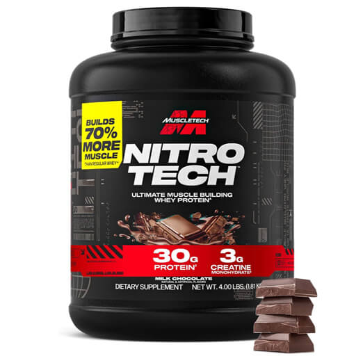 Nitro-Tech is a scientifically engineered whey isolate + lean musclebuilder formula designed for all athletes who are looking for more muscle, more strength and better performance. Nitro-Tech contains protein sourced primarily from whey protein isolate and whey peptides - two of the cleanest and purest protein sources available to athletes. Other whey protein supplements might have only a few grams of these highly bioavailable and easily digested proteins. Nitro-Tech is also enhanced with the most studied form of creatine for even better gains in muscle and strength.