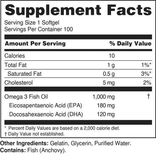 Rule 1 Fish Oil Softgel provide 1,000mg fish oil, yielding 180mg EPA and 120mg DHA. Our bodies can’t effectively produce these essential nutrients, so they must be obtained from seafoods or supplements made from marine sources.